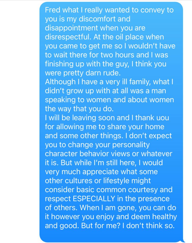 We landed on Guam and I got off the plane where my mom and stepdad were waiting. The lady on the plane with me let us reunite and didn’t introduce herself to them or say anything right then.